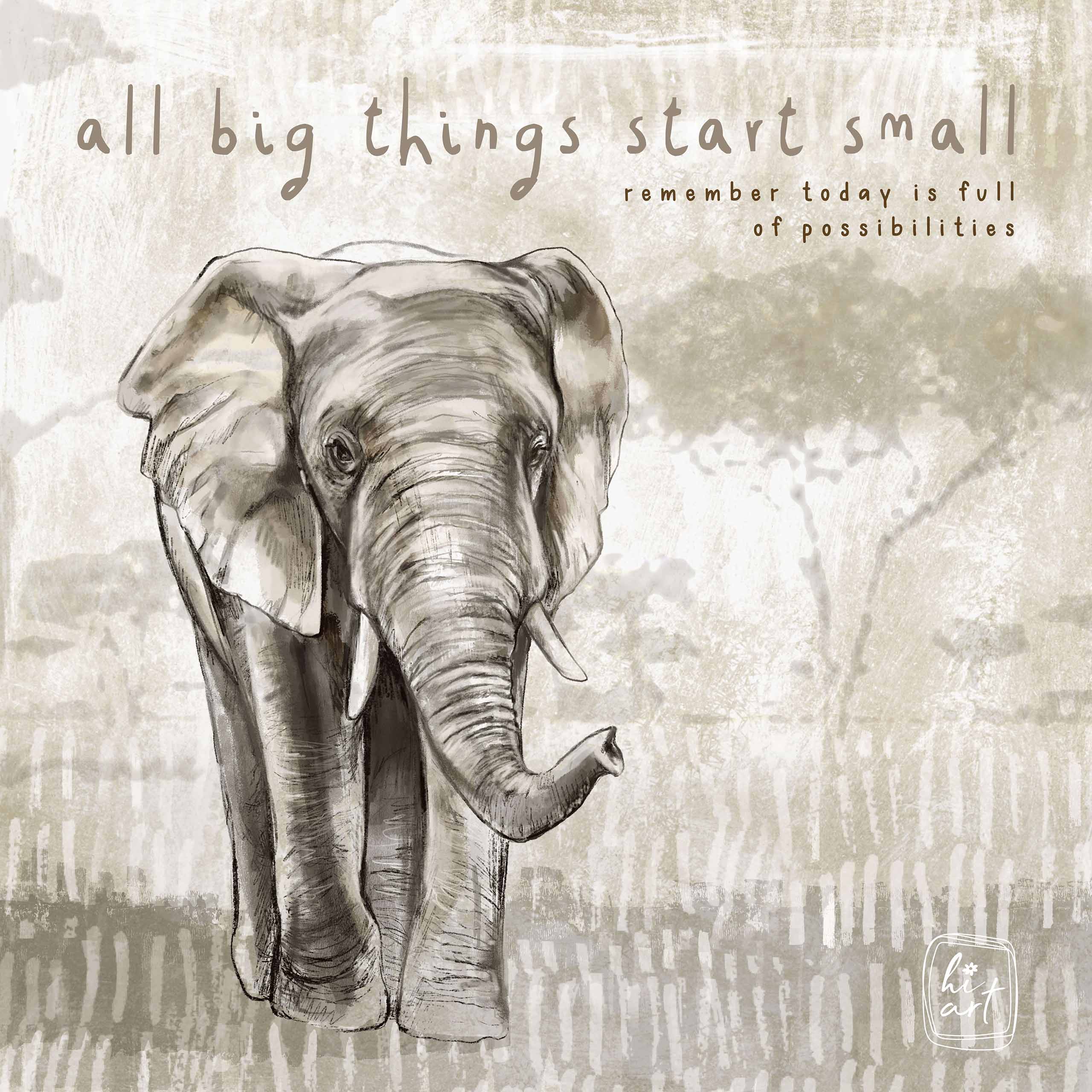 Embrace the power of small beginnings with this elephant artwork featuring “All big things start small” and “remember, every oak tree is full of possibilities.” The majestic elephant reminds us that God uses humble starts to create extraordinary outcomes. Perfect for encouraging perseverance and faith in the journey, no matter how small your current steps may seem.