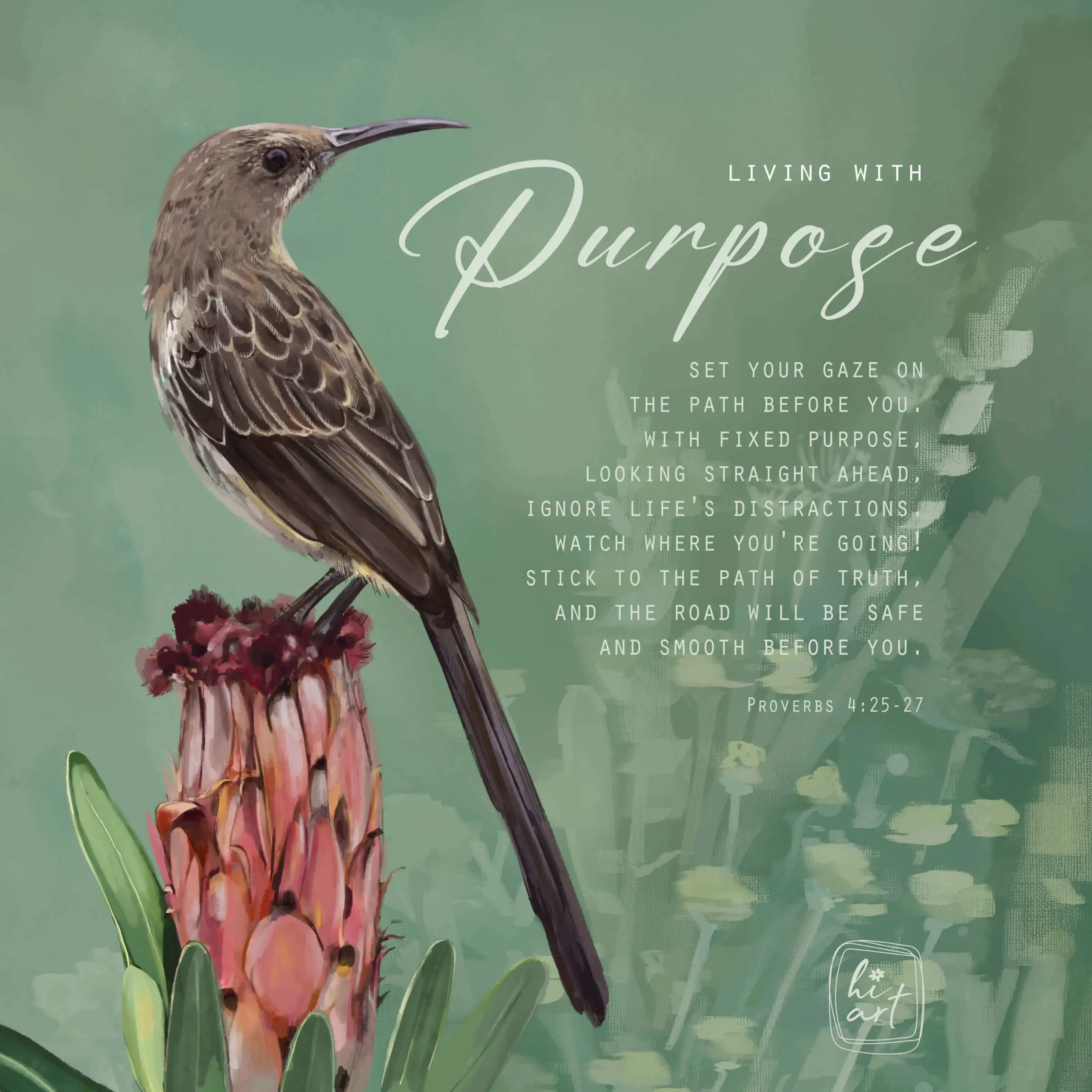 Discover your divine calling with this “Living with Purpose” sugarbird artwork featuring Jeremiah 1:5. The scripture reminds us that God knew us before we were born and has appointed us for His purposes. This piece combines the grace of the sugarbird with powerful truth about our identity and calling in Christ.